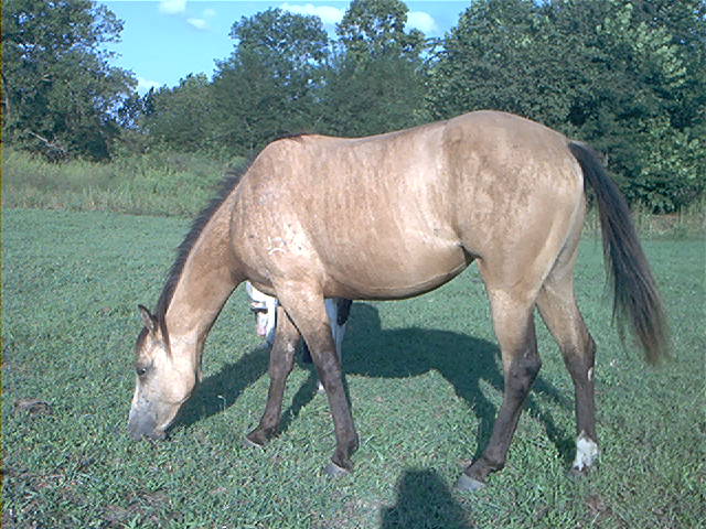 Many people confuse the Brindle pattern with Dun Factor markings (stripe down the back, barring on the legs, and occasional regular-spaced striping down the ribs). At one time, it was thought Brindle was a just a variation of Dun Factor. Indeed, there have been many examples of horses that were probably carrying both Dun Factor and Brindle. However, as can be seen from pictures of numerous Brindles in our slideshow, many do not have any Dun Factor markings whatsoever, indicating the two patterns are probably distinct genetically. Click highlighted type to compare Dun Factor and Brindle.