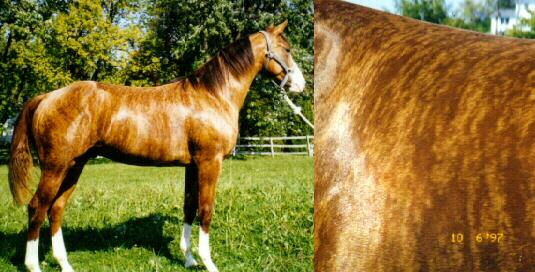 Volume 1, number 11. Written information was last updated © December 1, 1997. We will update the written information approximately once a month - however, because Brindle Horses are so rare, we may not be able to update the photos in the slideshow that often. When returning to this site, remember to select the refresh or reload icon from your internet explorer tool bar at the top of the screen, so your screen will reload the latest information. The address of this web site is https://www.brindlehorses.com