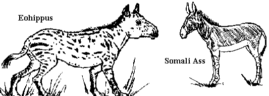 Archeologists have unearthed the remains of a tiny mammal, Eohippus, that it the forerunner of the modem equine. But bones cannot tell us what the coat and fur of the animal might have looked like. No preserved specimens (whether trapped in a tar pit or a bog) have ever been found that would show us the markings.